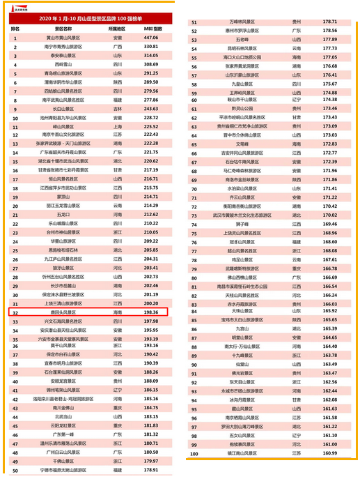 近期,迈点研究院独家发布了《2020年1月-10月山岳型景区品牌100强榜单》,作为海南仅有的三家上榜的山岳型景区之一,三亚旅文集团成员企业鹿回头风景区以198.36IBM指数位列全国总榜第32位,更强势登顶海南入围景区首位。